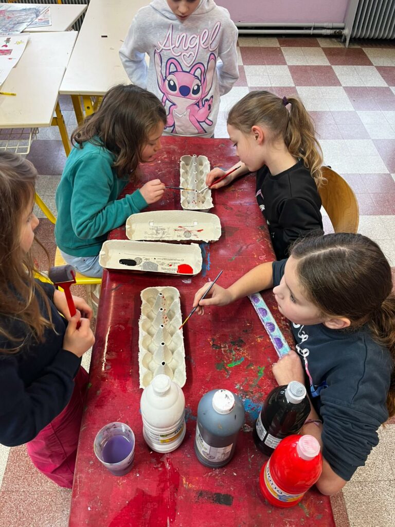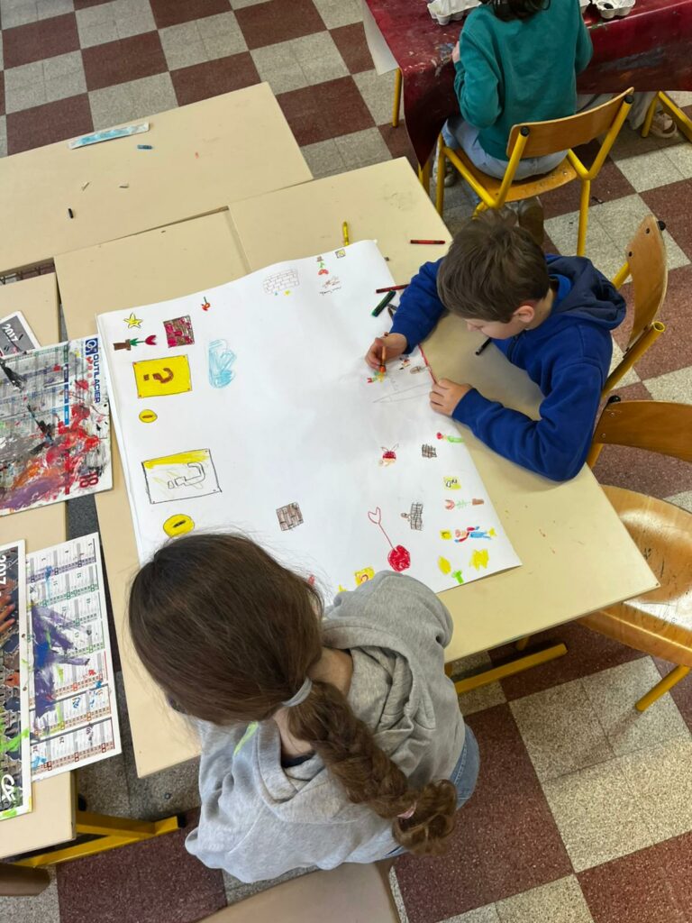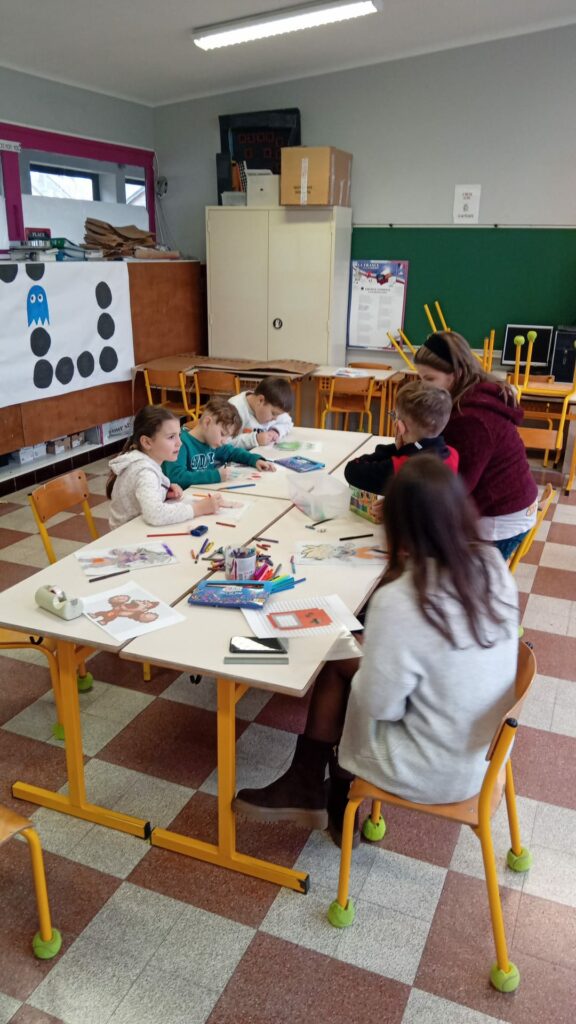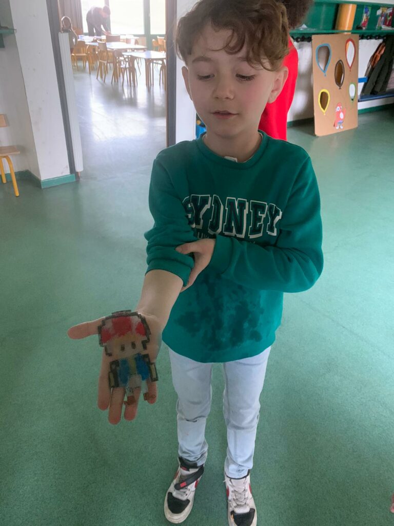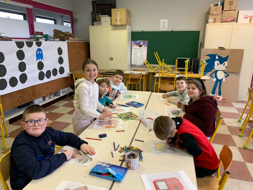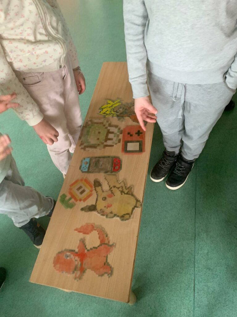 Les CE2 ont fabriqué de très grands porte-clés pixels, qu’ils peaufineront demain.