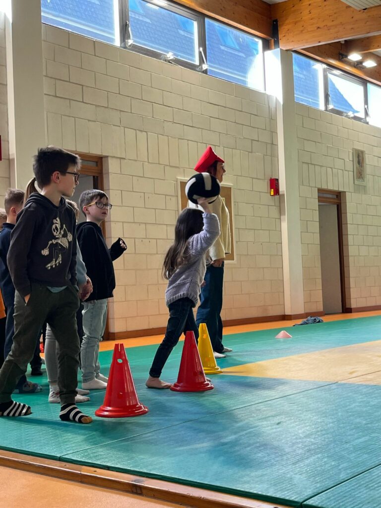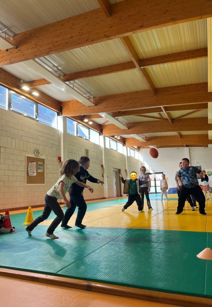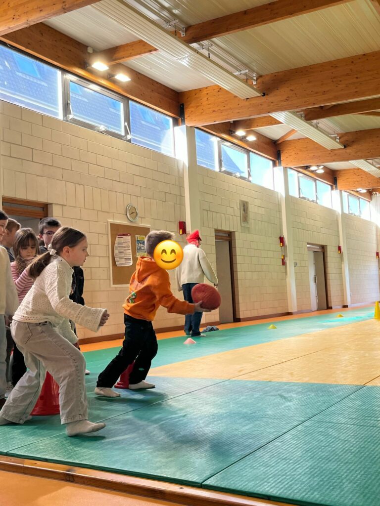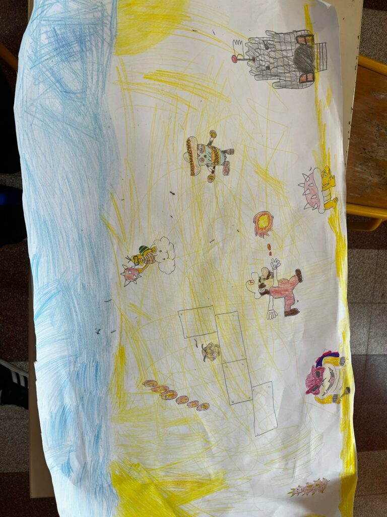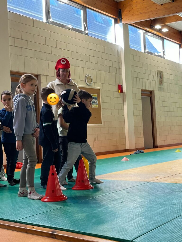 Les CE2-CM1-CM2 ont construit différents étages d’un jeu Mario/Donkey Kong puis ils ont fait plusieurs minijeux sportifs.