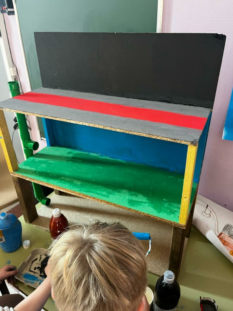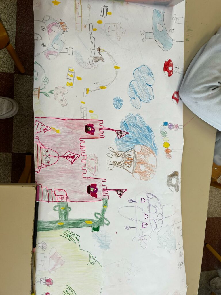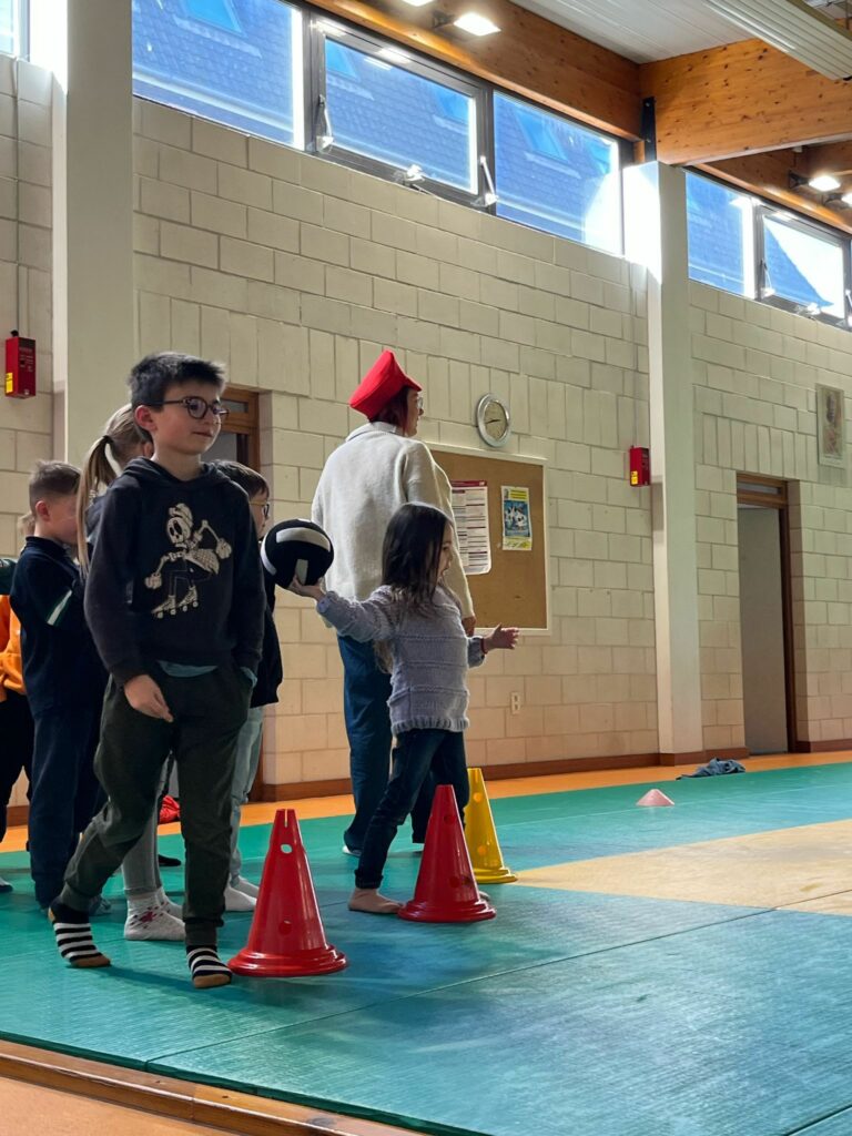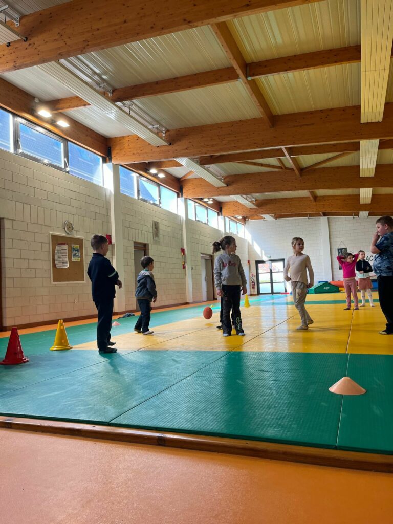Les CE2-CM1-CM2 ont construit différents étages d’un jeu Mario/Donkey Kong puis ils ont fait plusieurs minijeux sportifs.