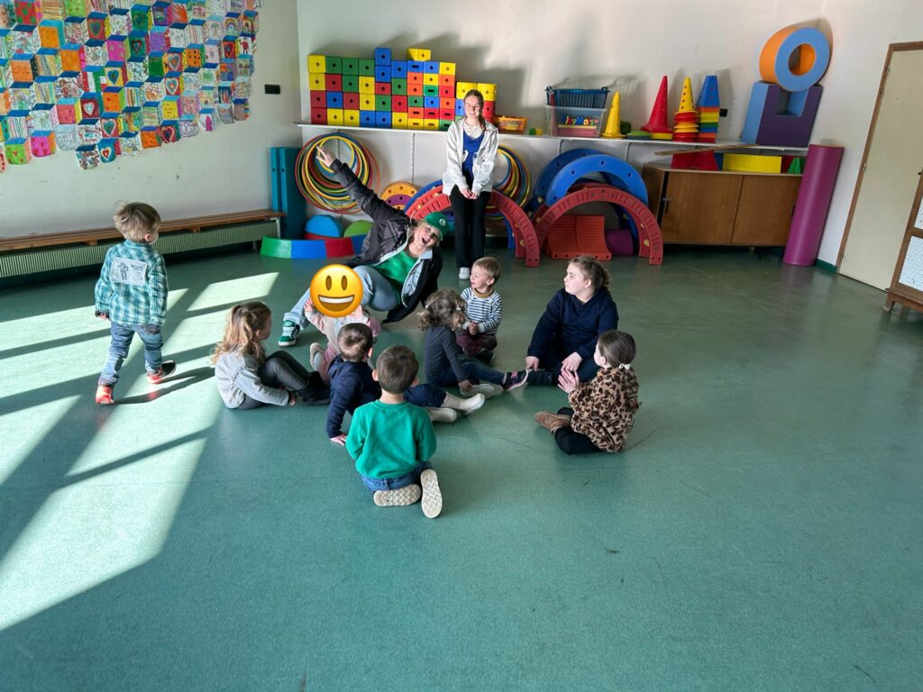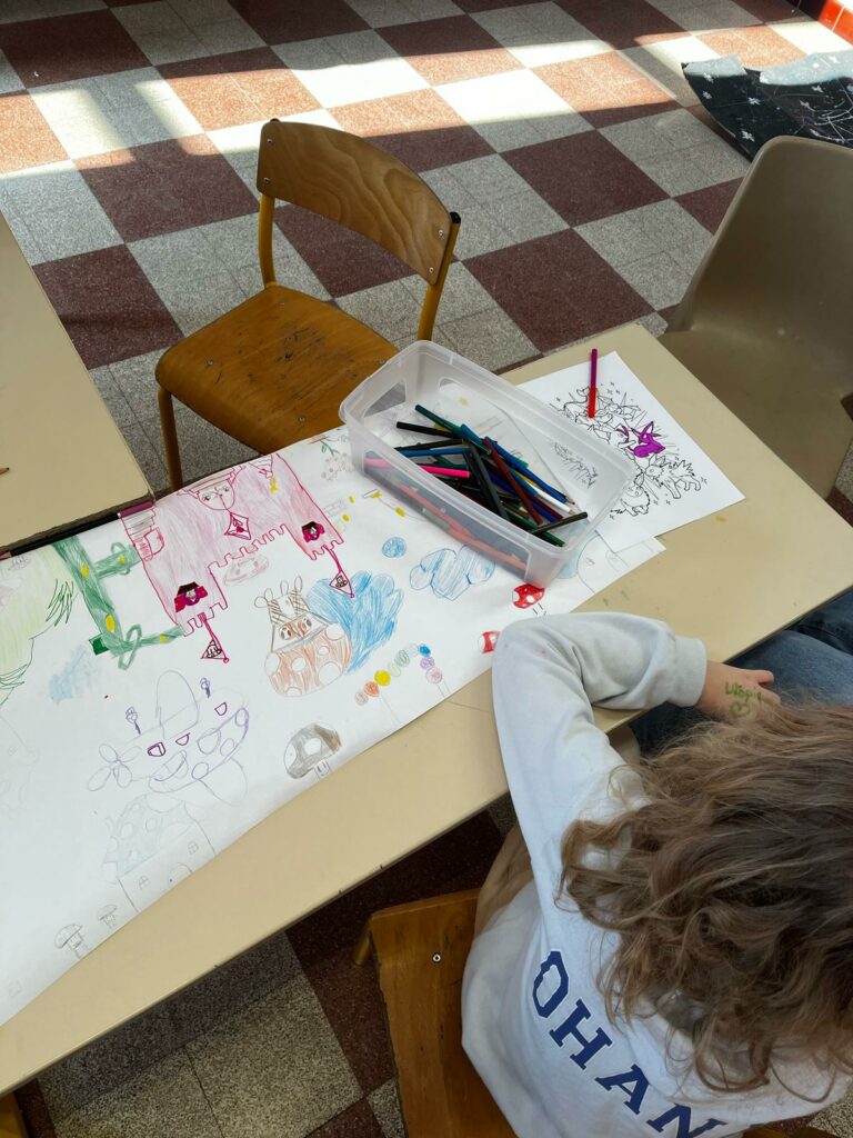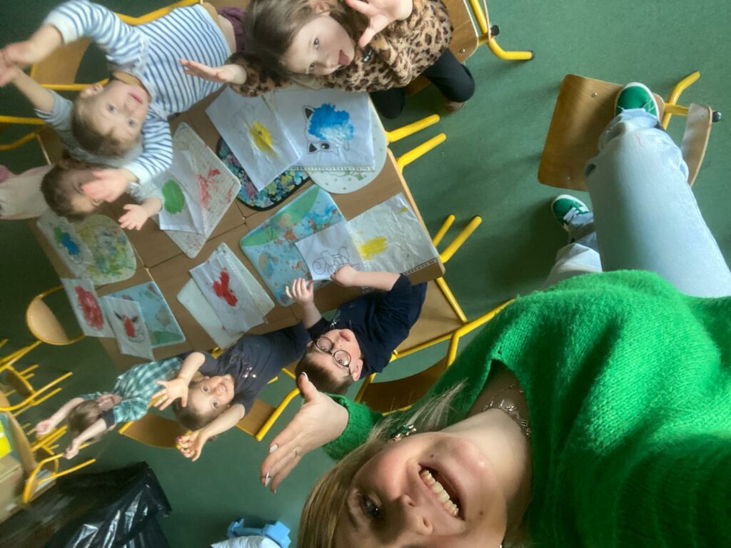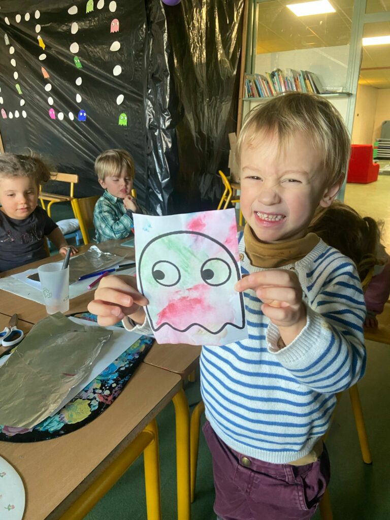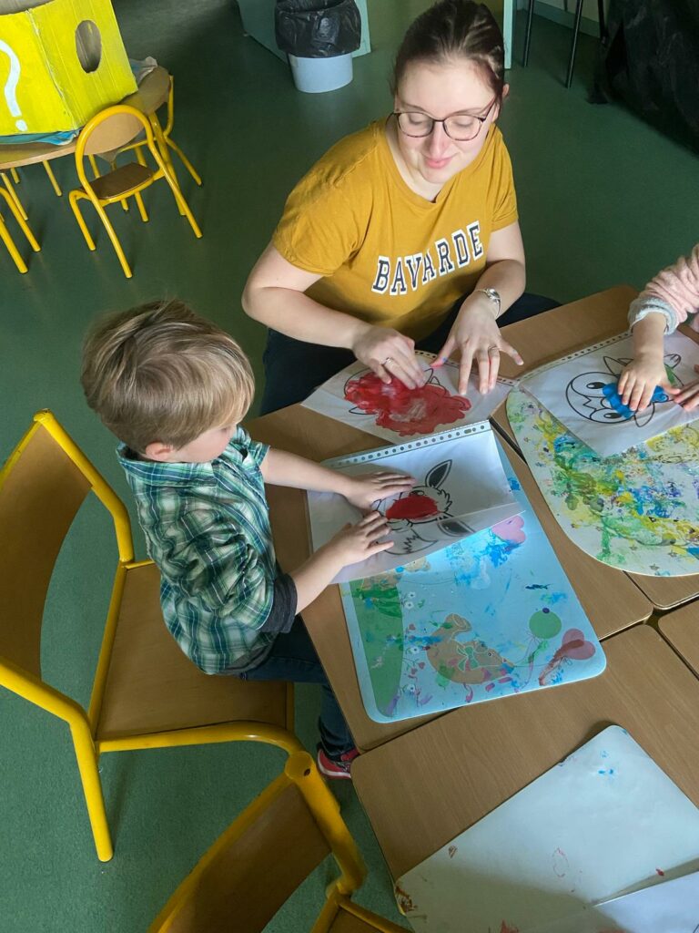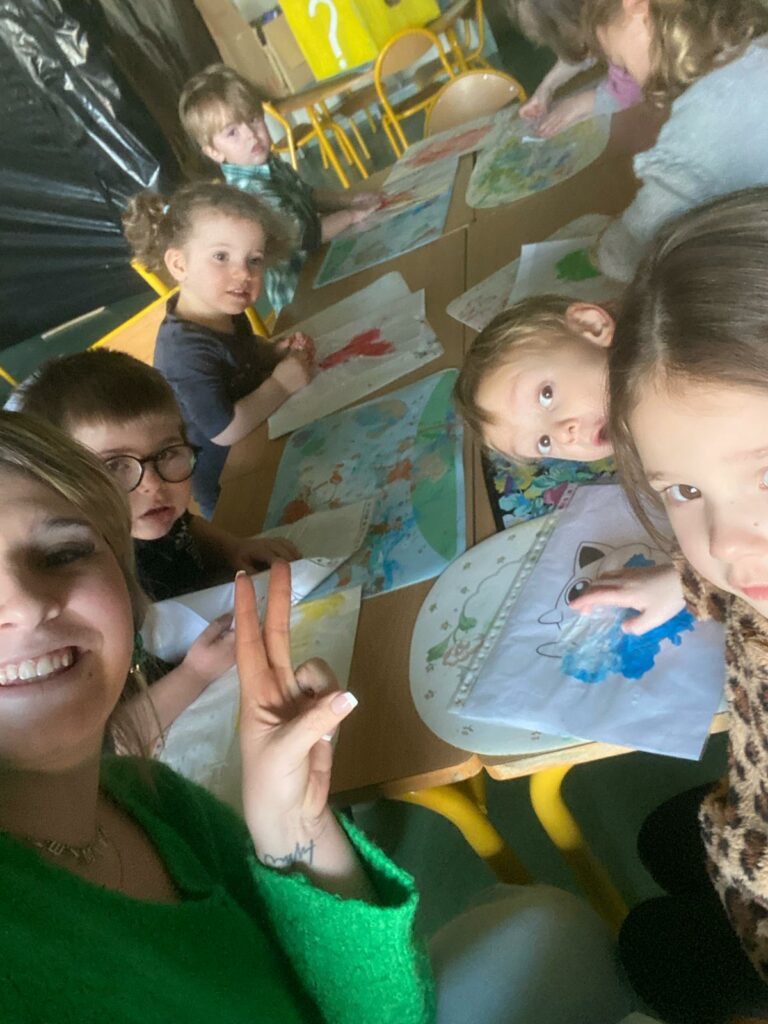 Aujourd’hui, les plus petits ont commencé par des jeux de connaissances, puis ont enchaîné sur le rituel réveil dynamique avec de la danse. Ils ont expérimenté de la « peinture propre » ainsi que de la peinture magique grâce à du papier d’alluminium.
