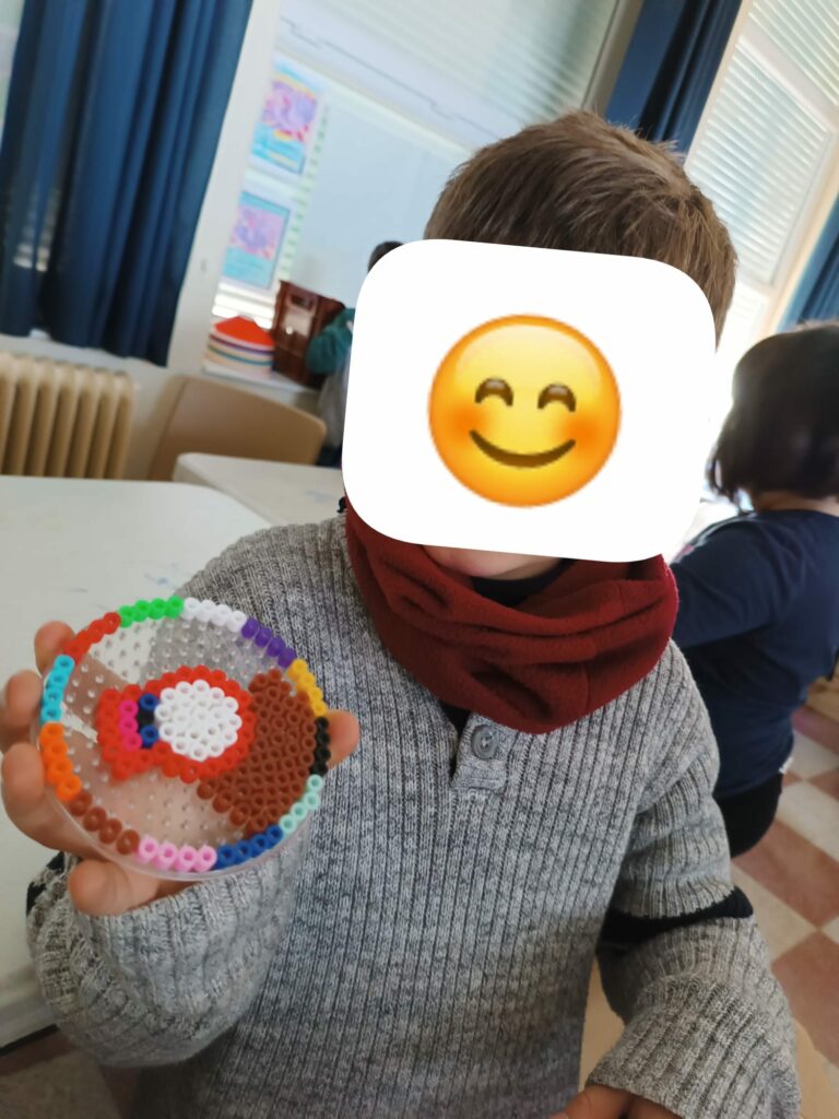 Le groupe des MS-GS ont fait de petits objets en perle à repasser et découvert le playmaïs. Ils ont, ensuite fait un rallye photo avec plusieurs minijeux.